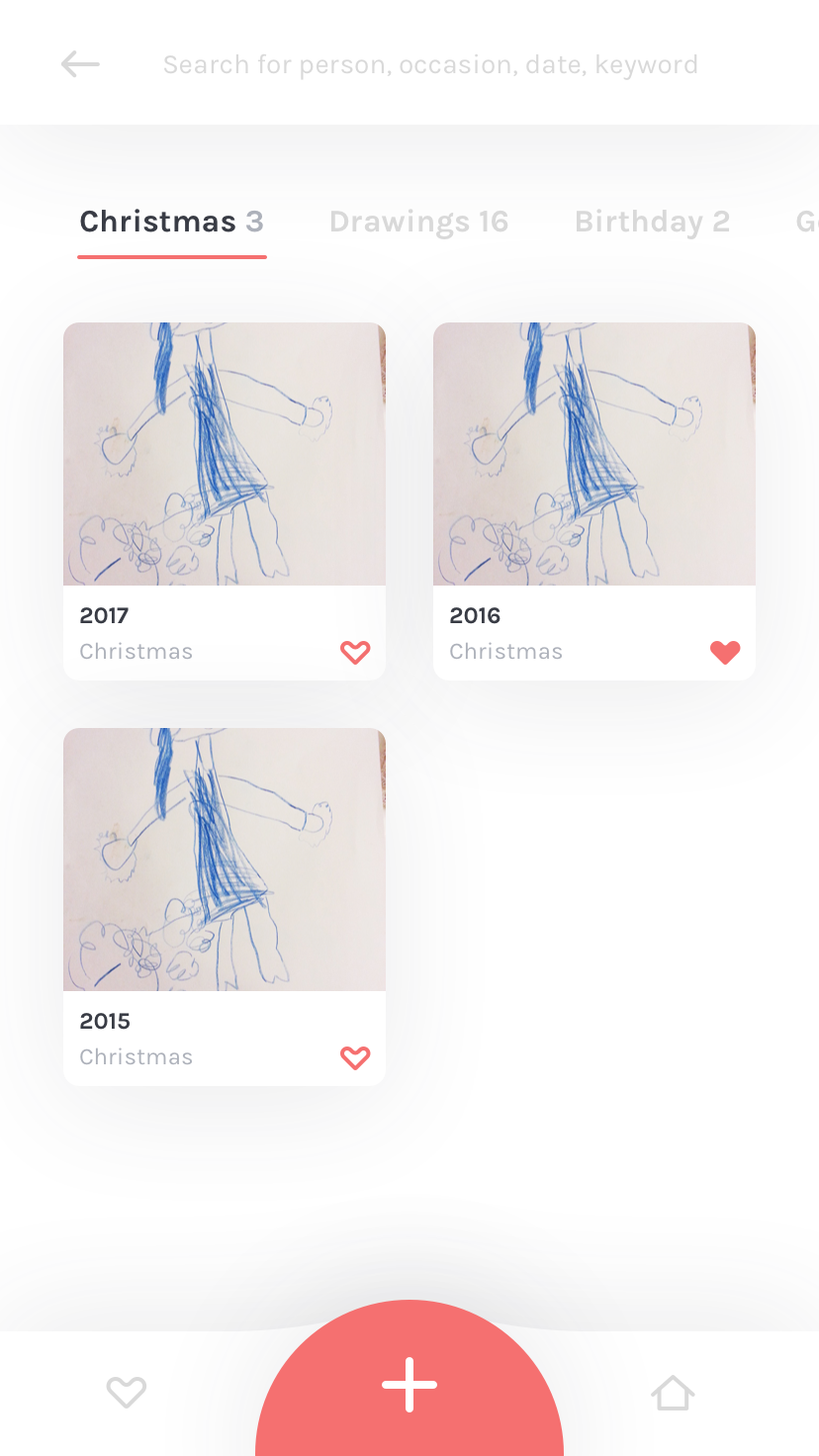 Memento is a place to keep all of your birthday cards, holiday cards, kids drawings, and keepsakes from any certain person or moment in your life.
